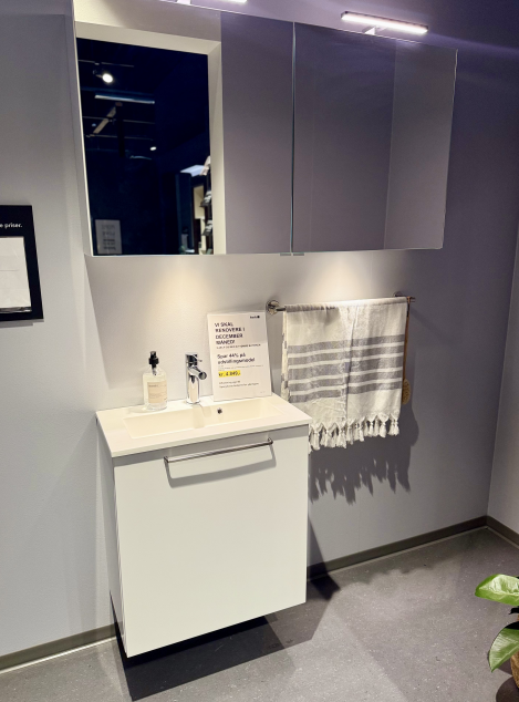 Badmodul med hylder og 2 overspejle med indbygget lys og armatur