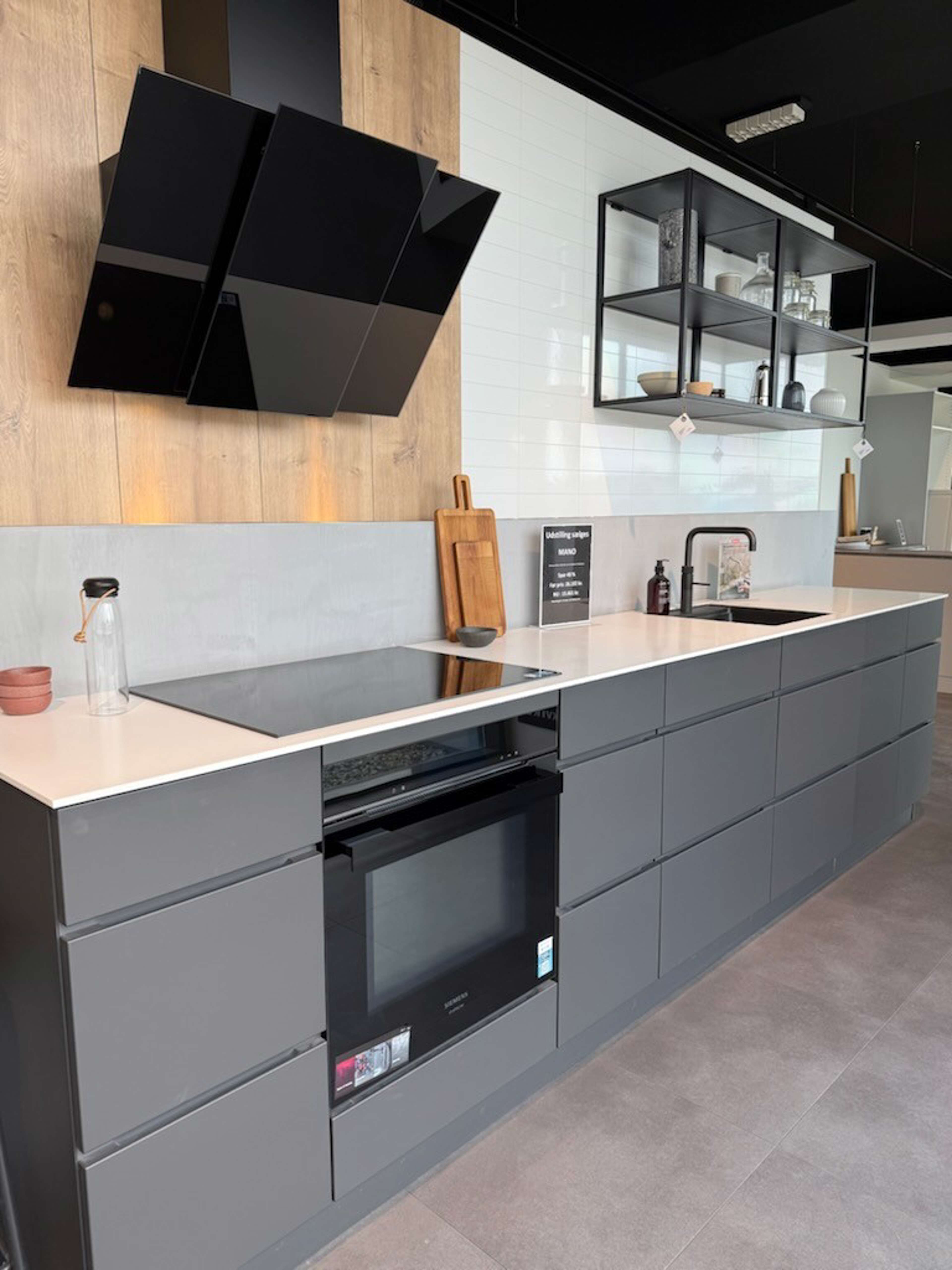 Når du vælger et af vores udstillingskøkkener, får du samme fede danske design og høje kvalitet som altid hos Kvik – bare meget billigere. Har du brug for at tilpasse køkkenet, så det passer 100% til dit hjem, kan du købe ekstra skabe, skuffemoduler og andet tilbehør til din valgte udstillingsmodel.