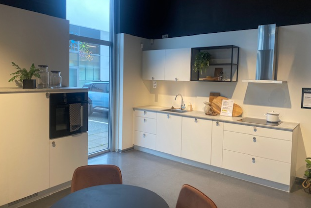 Alle modeller herover er udstillingskøkkener fra vores butikker, og der kan derfor forekomme mindre brugsspor. Priser er angivet for afhentning i den pågældende butik. Vil du gerne have hjælp til at montere køkkenet, eller har du andre spørgsmål, skal du blot kontakte butikken.