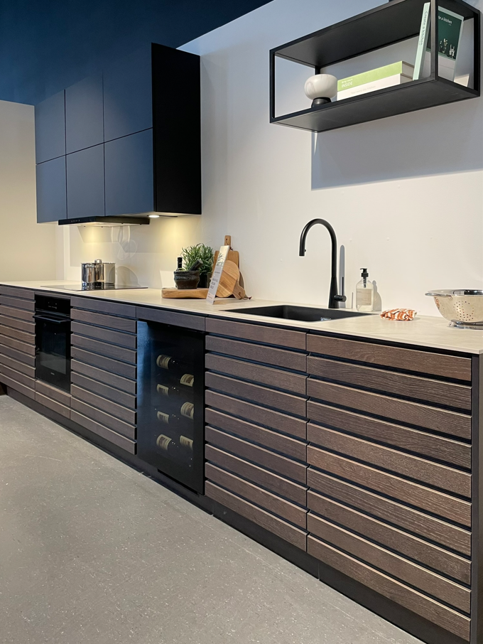 Inkl. skabe, indretning, bordplade og vask.
