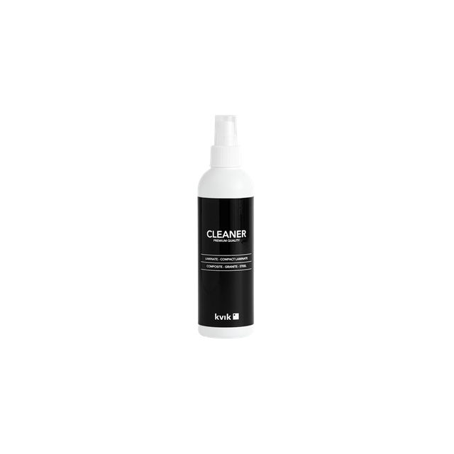 Oplev vores Cleaner fra Kvik, der gør det nemt at holde dine overflader rene og pæne i hverdagen. Dette effektive rengøringsmiddel er specielt udviklet til laminat, kompakt laminat, sten og stål. Med en praktisk størrelse og en neutral hvid farve passer den perfekt ind i ethvert køkken. Cleaner fjerner fedt og snavs, så dine overflader altid fremstår skinnende rene.